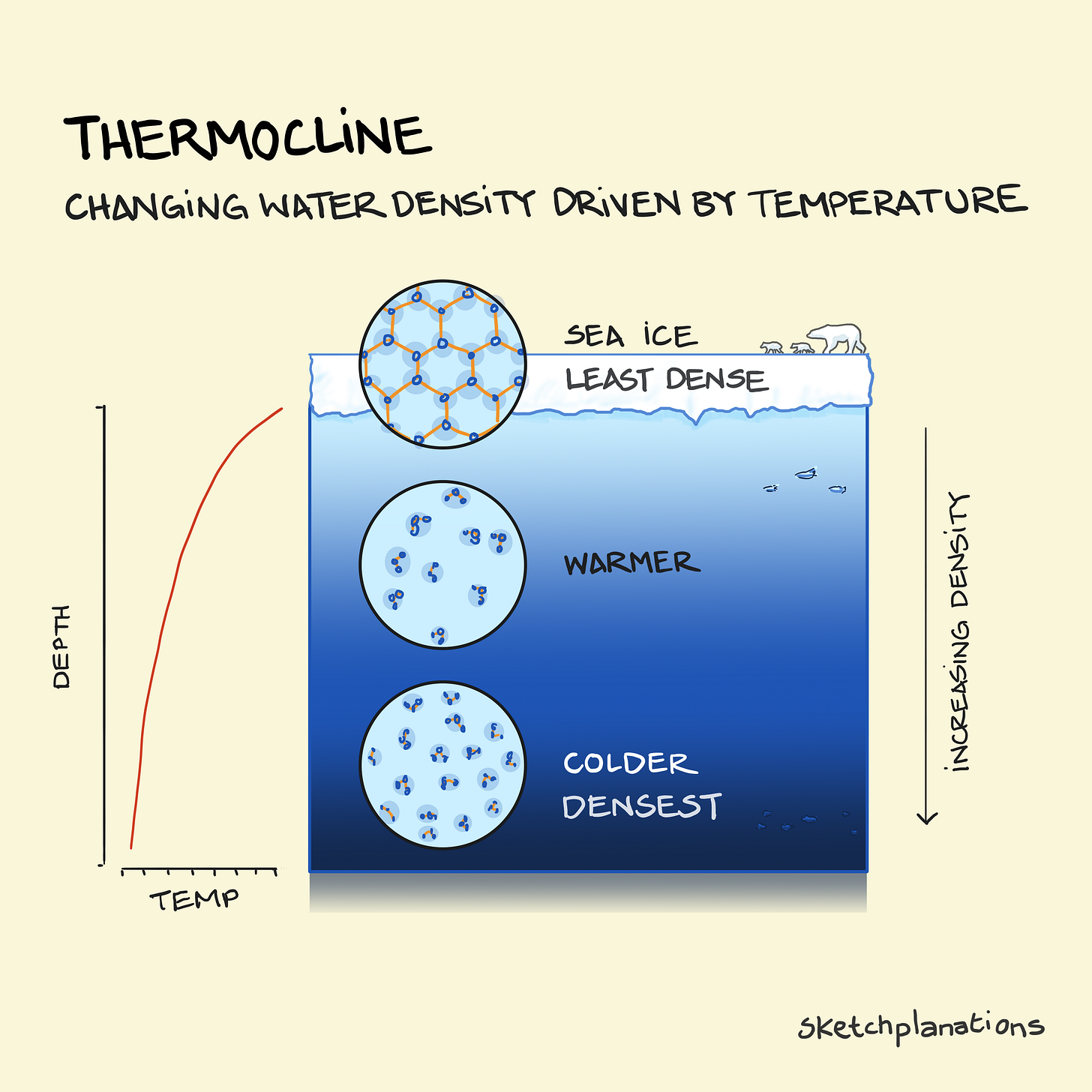 That heat comes from the ocean’s surface, where water is stirred by wind, currents, and jet skis. This top layer is called the mixed layer (ML), and its churning gives it a fairly uniform salinity and temperature. Immediately beneath lies the barrier layer (BL) which, as its name suggests, serves as a barrier between the mixed layer and the layer below - the thermocline (another reference for fans of the HFRO book). The thermocline is the zone where water temperature begins to drop rapidly with depth.